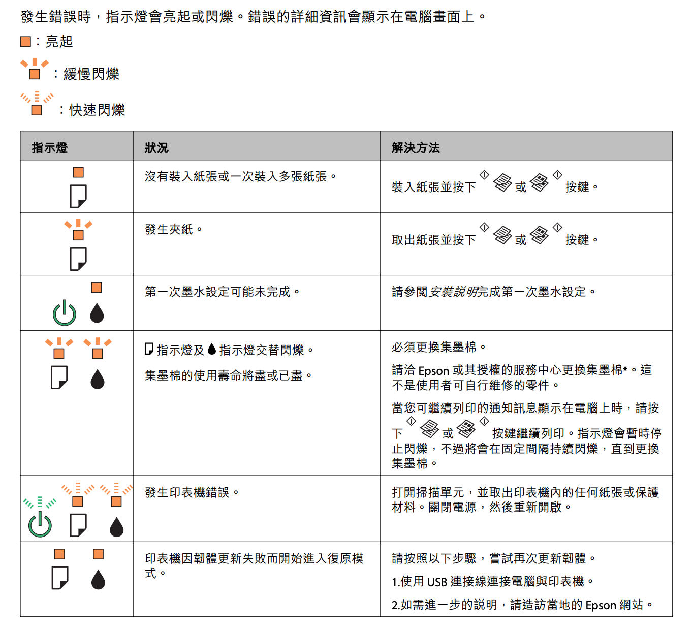 我翻了下 EPSON L220 的手册,故障说明大概是这样: