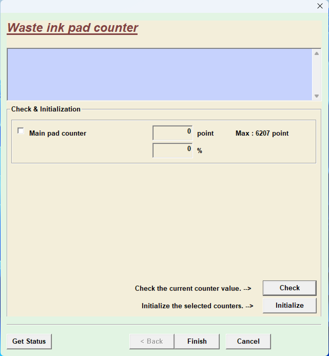 进入后会看到一个列表,在 Maintenance 里找到 Waste ink pad counter: